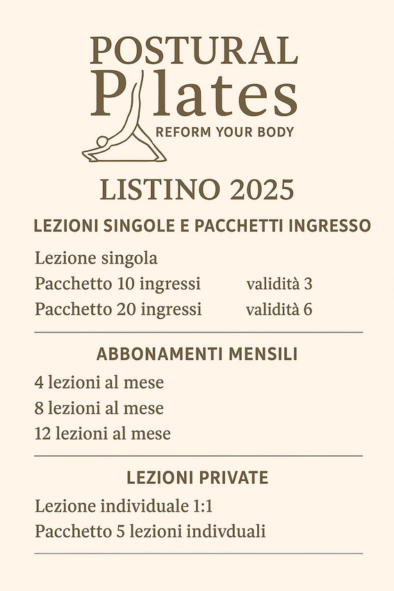 Il listino prezzi è strutturato in modo semplice e trasparente, con diverse soluzioni che permettono di scegliere il percorso più adatto alle proprie necessità. Sono disponibili pacchetti mensili, carnet di lezioni e sessioni individuali, ideali per chi desidera un lavoro più personalizzato. Ogni opzione è pensata per offrire flessibilità, continuità e convenienza, mantenendo sempre alta la qualità del servizio. Per informazioni dettagliate su costi, disponibilità e promozioni attive, puoi contattare direttamente lo studio o richiedere una consulenza personalizzata.